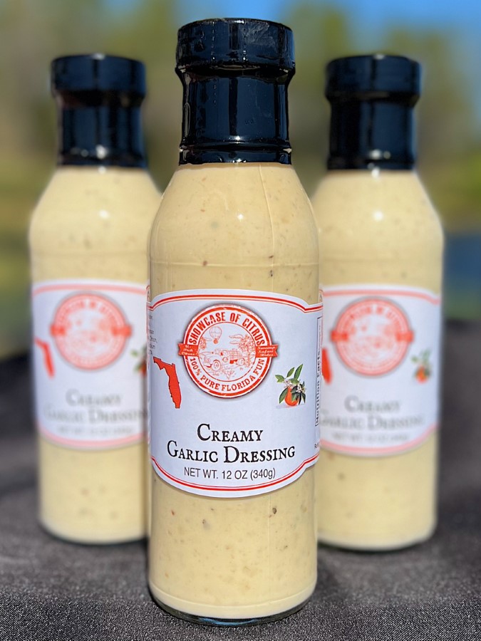 12oz. – Ingredients: Soybean oil, water, vinegar, buttermilk, egg yolk, roasted garlic puree, parmesan cheese, salt, lemon juice, onion, garlic, citric acid, spice, sodium benzoate (preservative), EDTA added to protect flavor. Contains: Milk, Egg