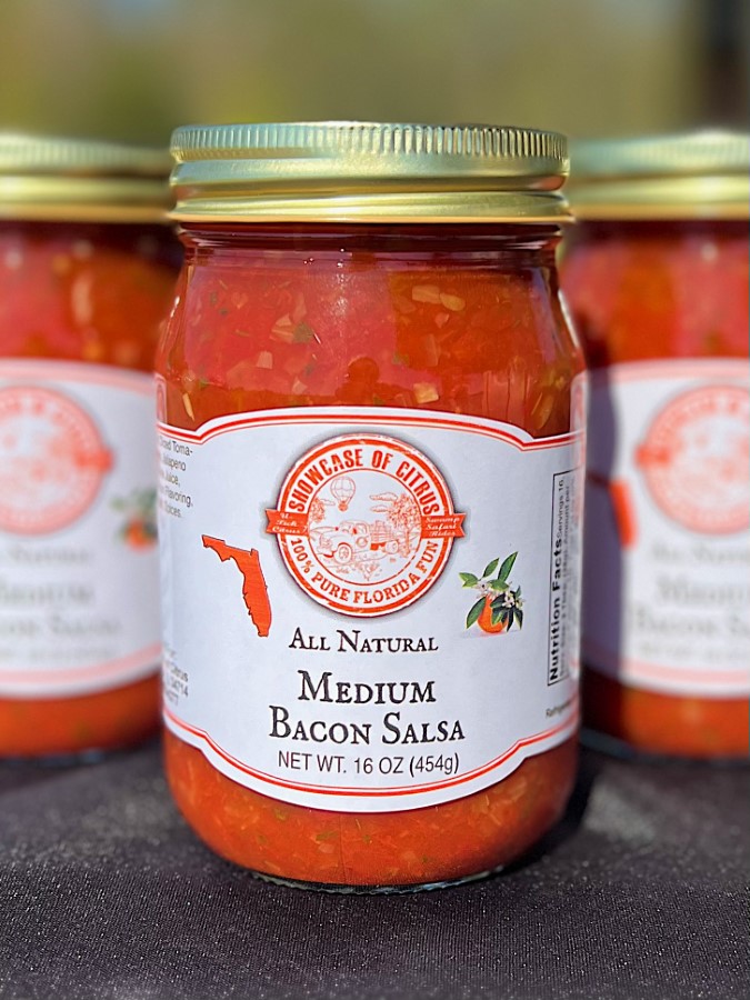 16oz. – Ingredients: Diced tomatoes, onions, jalapeno peppers, lime juice, natural bacon flavoring, cilantro, salt, spices.